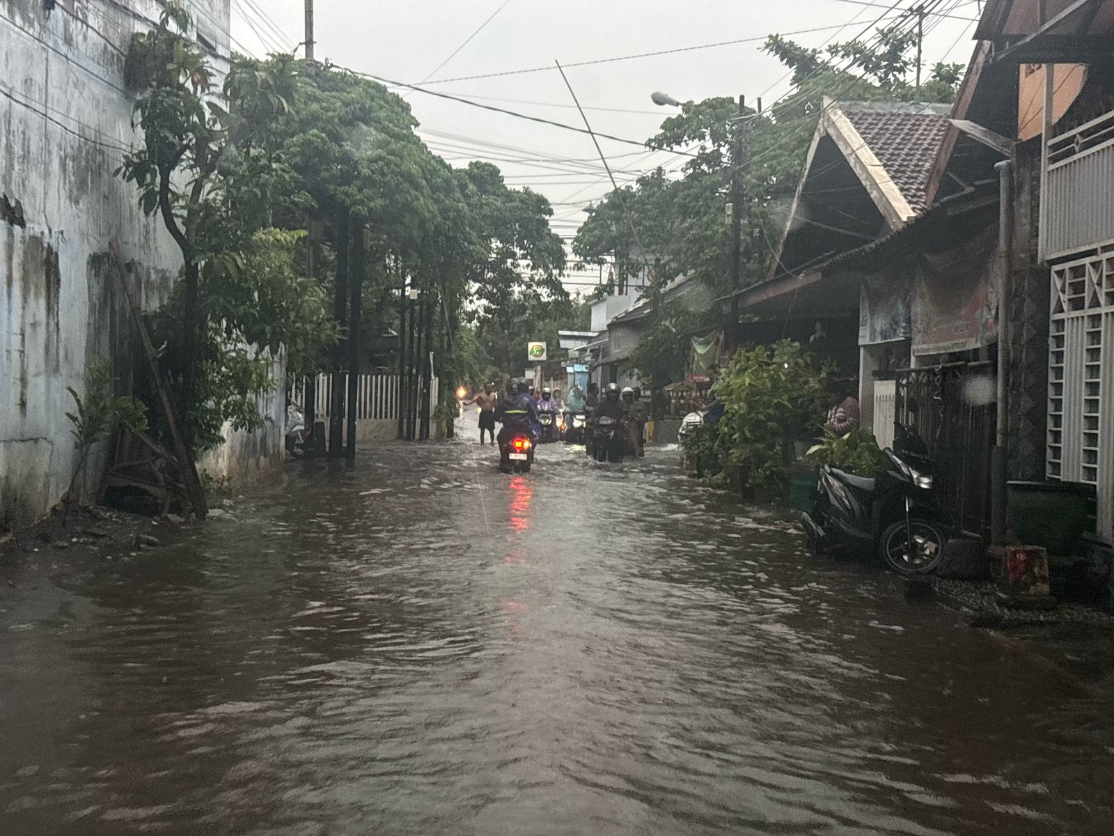 Bahkan genangan air masuk ke halaman rumahnya setinggi mata kaki. Soleh juga mengatakan, ada beberapa kendaraan roda empat terpantau mogok saat melintas.