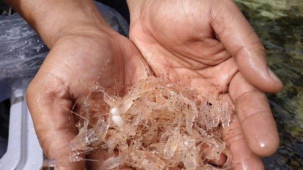 Tulungagung – Dampak Cuaca dan kiriman air sungai dari Niyama, harga Benur atau Benih Bening Lobster nelayan Tulungagung turun drastis hanya dijual 500 rupiah perekor.