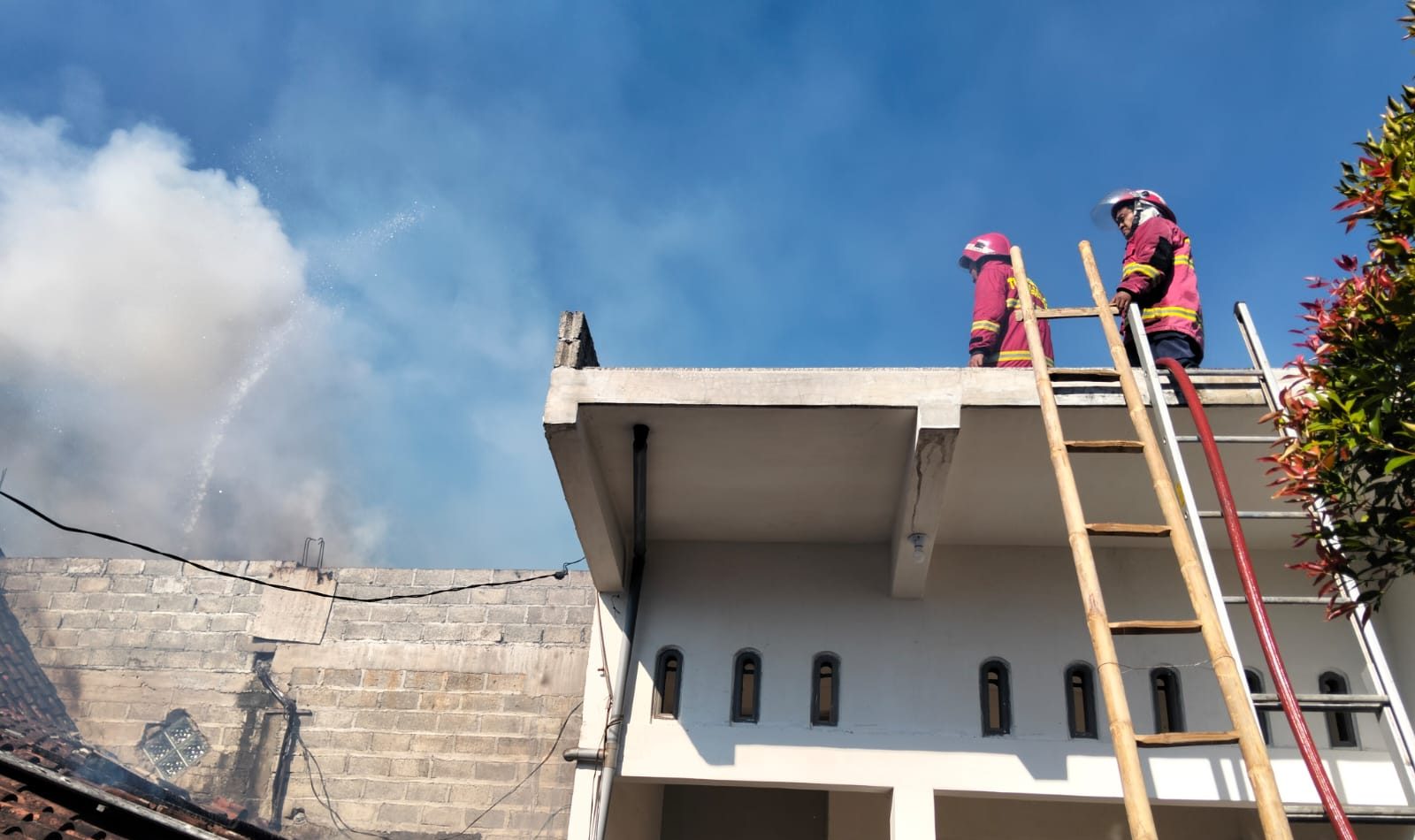 Diduga Korsleting Listrik Tumpukan Kayu dan Kain Perca di Atap Cor Rumah Warga Kedungwaru Terbakar Perbesar