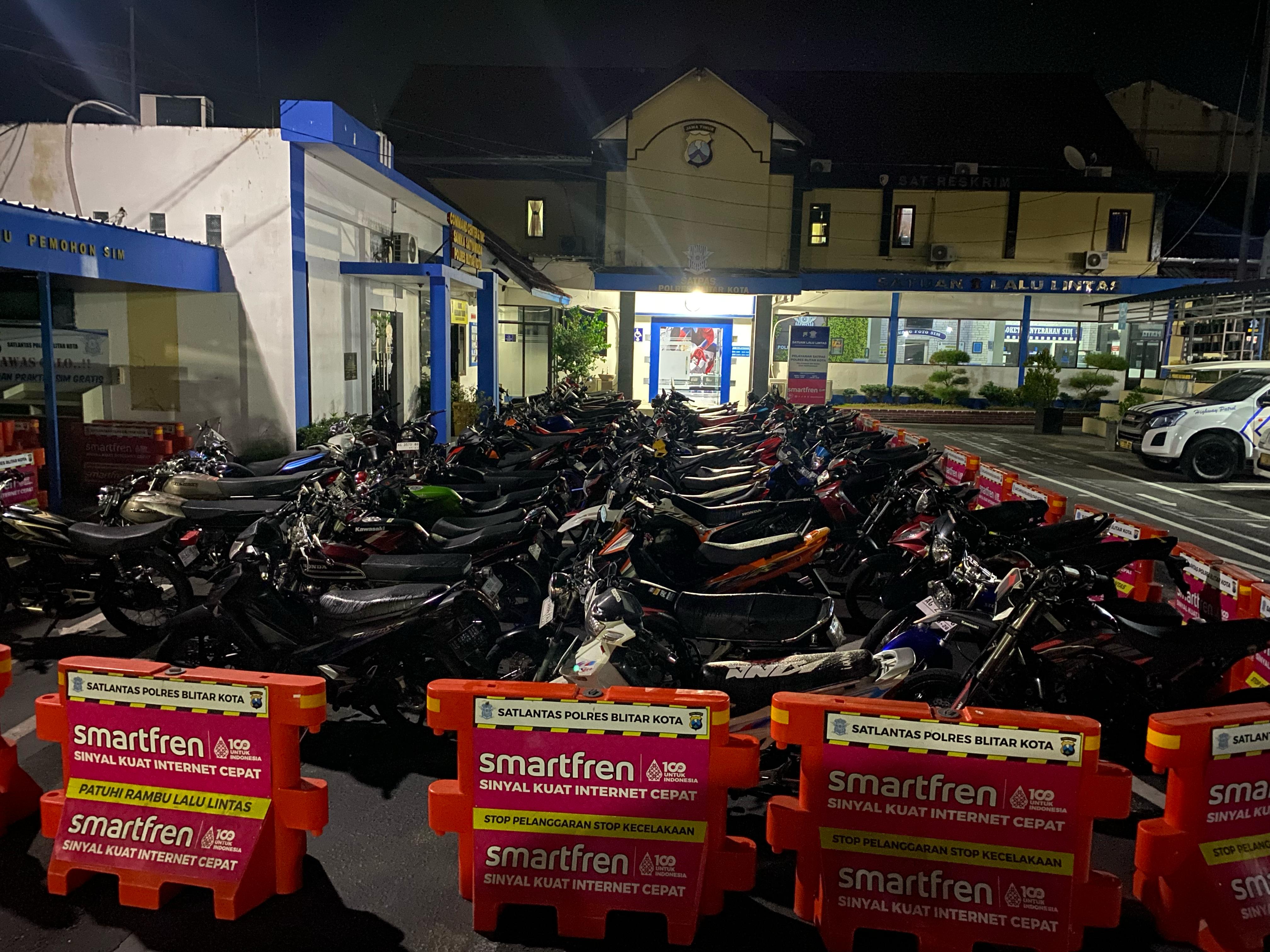 Blitar – Sebanyak 68 unit sepeda motor terjaring razia knalpot brong dan balap liar di wilayah Kota Blitar pada Jumat malam, pengendara masih didominasi para pelajar.